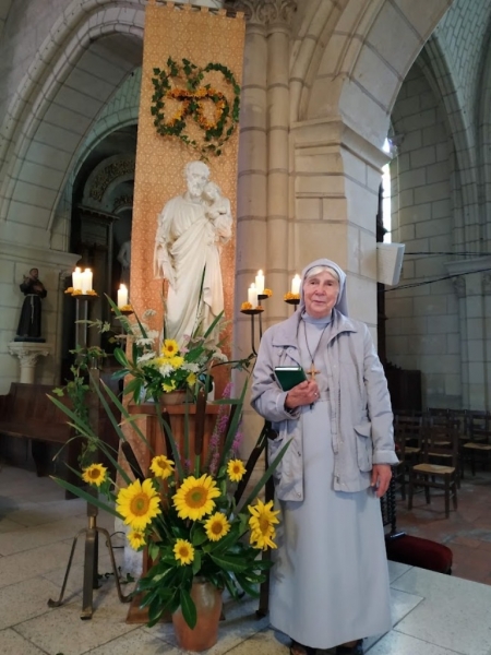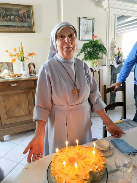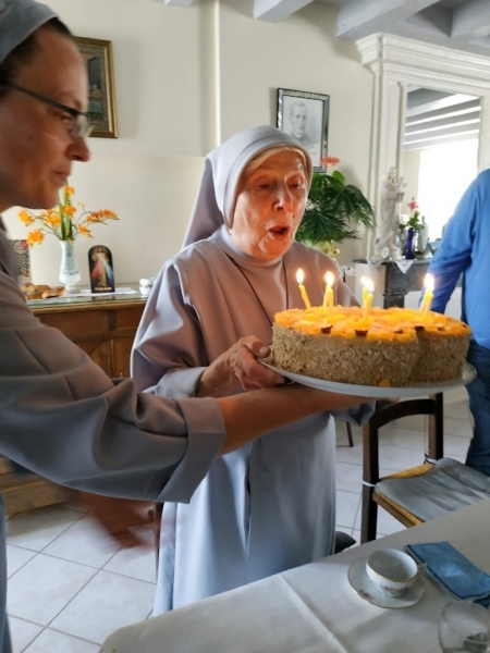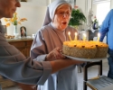 S. Aurelia weszła do kościoła w procesji z zapaloną świecą, a przed ofiarowaniem odnowiła śluby zakonne otoczona siostrami, które jak ona przeżywały te chwile z wielką wdzięcznością za to, co Bóg nieustannie dokonuje w naszych sercach. Po Mszy św. wszyscy obecni parafianie śpieszyli z życzeniami dla siostry Aurelii. Rodzinna atmosfera była pełna emocji i wzruszeń. Następnie kontynuowałyśmy świętowanie przy wspólnym stole. Przepełnione miłością i wdzięcznością rozczulone serce s. Aurelii wznosi nieustannie okrzyk radości – „Bóg Ci zapłać Boże!”
