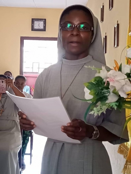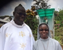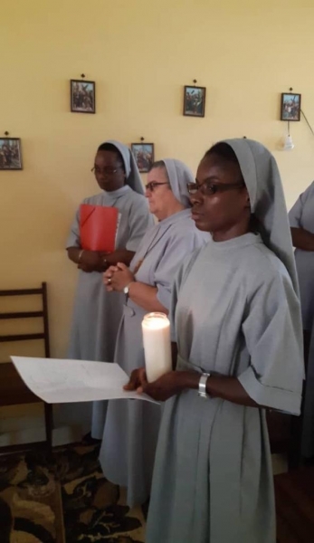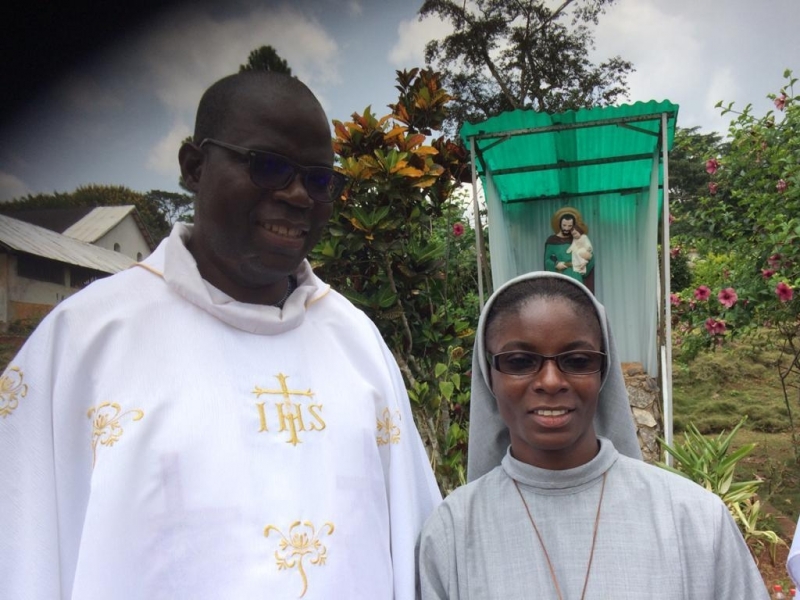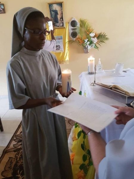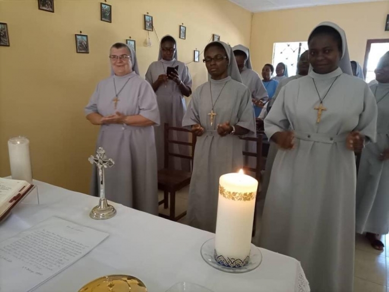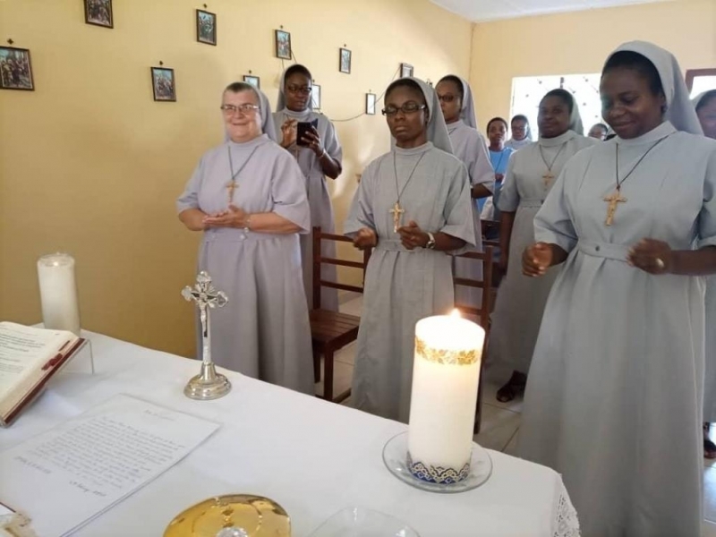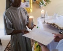 przewodniczył Ks. Denis - Pallotyn, który również towarzyszył Siostrom w czasie rekolekcji. Nie zabrakło też delegacji z przedszkole, gdzie Siostra Belange odbywała swój staż nowicjacki. Była to miła niespodzianka, szczególnie widok dziewczynki - małej Marie wpatrującej się nieustannie w Siostrę i jej gesty. Wszystko ku chwale Boga i Niepokalanej Maryi.