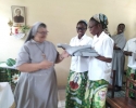 Mszę św. celebrowal ks. Victor Essono zwracając uwagę szczególnie w czasie poświęcenia stroju zakonnego, na znaczenie konsekracji Bogu, “wyjęcia ze świata” dla składania świadectwa przynależności do Boga i Rodziny zakonnnej Sióstr Świętego Józefa. Zachęcił Siostry do noszenia stroju z “dumą i godnością”, ponieważ powołane są do szczególnej misji, która nazywa się posługiwaniem. To strój “sługi Boga” - codziennie ten sam, jak niezmienny jest Bóg. Wszyscy życzli Siostrom ukochania tego stylu życia i wierności obietnicom złożonym Bogu. Na rozesłanie Celebrans błogosławił mówiąc: “Wypłyńcie na głębię, nie oglądajcie się wstecz, przyłożyłyście bowiem już rękę do pługa”.