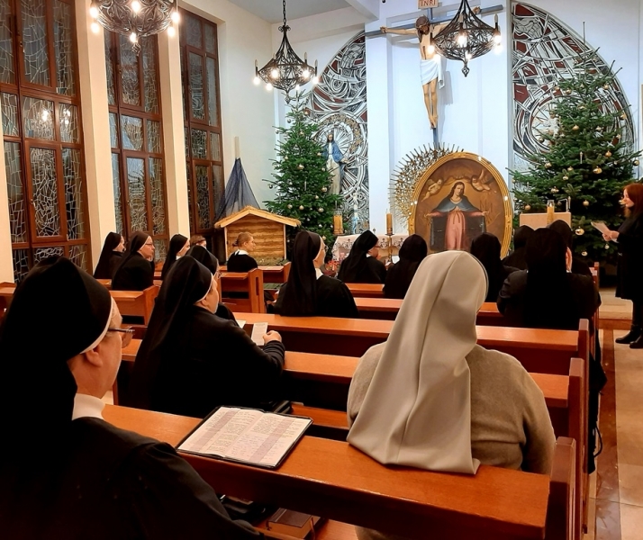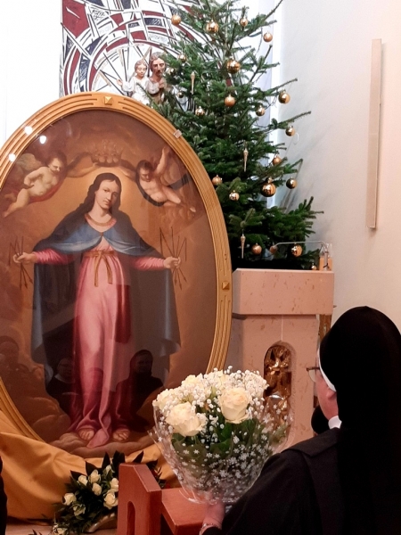W wieczornych godzinach, siostry wyszły na spotkanie Maryi, by w Ją przywitać i ze śpiewem na ustach wprowadzić do kaplicy. W imieniu Wspólnoty Przełożona generalna Zgromadzenia Matka Wanda przywitała MB Łaskawą: