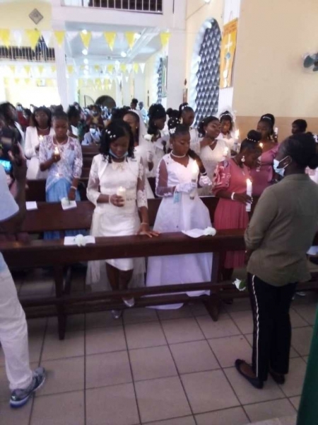 Otóż, po stosownym okresie przygotowania 41 dzieci i młodzieży przyjęło Sakrament Chrztu i Pierwszej Komunii św. Dziękujemy Panu Bogu za ten dar niepojętej Bożej łaski. Wyrażamy też wielką wdzięczność rodzicom za to, że przyprowadzali systematycznie dzieci na katechezę. Cieszymy, że zasiane ziarno ewangelizacji wydaje owoce.
