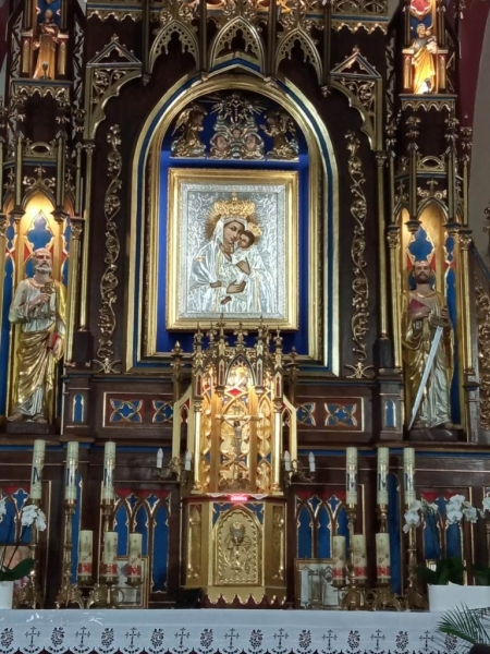 Na prośbę ks. prob. Zbigniewa Kaleciaka odbyło się uroczyste wprowadzenie relikwii tego wielkiego Apostoła Bożego Miłosierdzia w czasie parafialne Sumy na której, jak i na pozostałych trzech Mszach św. słowo wygłosiła s. Dolores CSSJ. Na każdej z tych Eucharystii ubogacona została też oprawa liturgiczna przez siostry józefitki: s. Annę, s. Rozalię, s. Celinę i s. Terezitę. Nadto siostry poprowadziły modlitwę różańcową. Nie zabrakło również parafialnej życzliwości i gościnności.