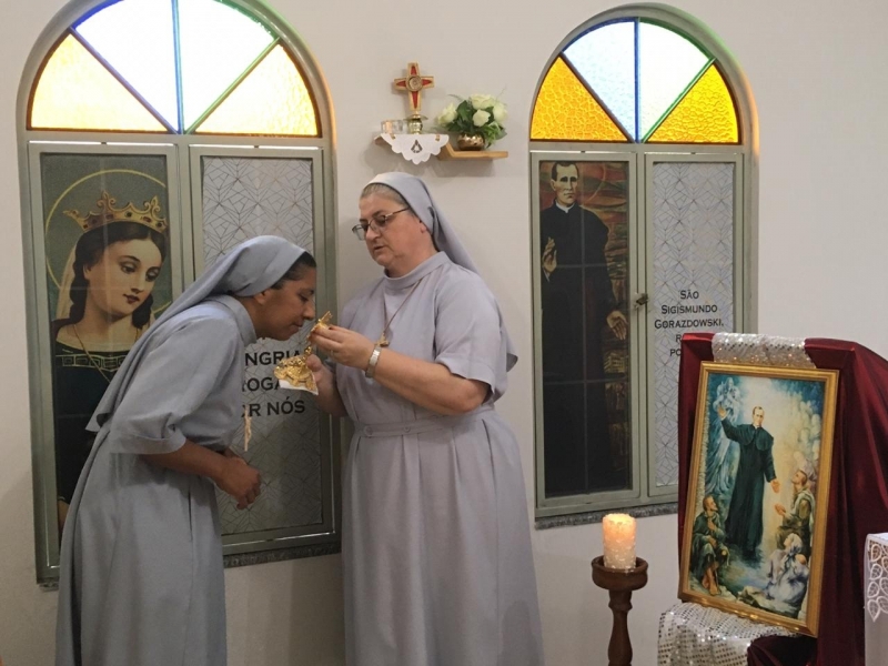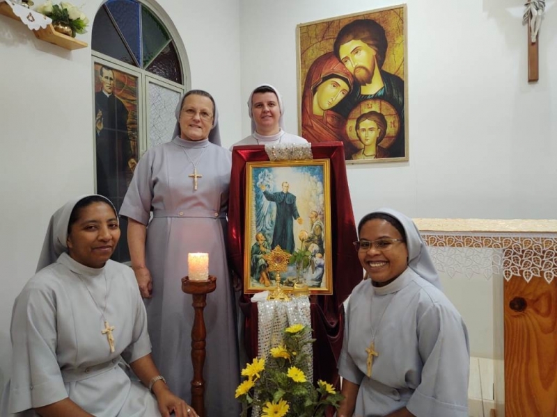 przez Przełożoną naszej Brazylijskiej Delegatury S. Doris Kulik CSSJ, na prośbę i za natchnieniem naszej Przełożonej Generalnej M. Jany Przetak była bardzo wyjątkowa. Czułyśmy żywą obecność Ojca Założyciela. W oczach każdej z nas zakręciła się łza szczerej radości a serce szeptało: Ojcze Zygmuncie jesteś z nami. Twoja obecność przemienia wiele w nas i wokół nas... S. Przełożona naszej Wspólnoty S. M. Joana Jacotenski CSSJ przywitala tak Dostojnego Gościa słowami: Ojcze Drogi, witamy Ciebie w naszej wspólnocie. Twoja obecność ubogaca nas i napełnia radością. Czuj się Ojcze jak w domu i przemawiaj znów do naszych serc. Przykład Twojej miłości do Boga i do bliźnich umacnia nas na drodze powołania i przynagla, abyśmy razem z Tobą były “wszystkim dla wszystkich”. Twoje życie wciąż jest przykladem dla nas. Wciąż żyjesz i jesteś obecny we współczesnej rzeczywistości zranionej brakiem miłości, we współczesnym czasie, który potrzebuje, aby Duch Święty, który Ciebie prowadził , prowadził nas rownież. Wierzymy w Twoje wstawiennictwo za nami my, które zmierzamy się z wyzwaniami każdego dnia. Czujemy twoje wsparcie w naszych codziennych potrzebach, a szczególnie, kiedy pochylamy sieę nad bliźnim – czy to jest współsiostra czy to ubogi, który nas nawiedza. Te chwile przeżywane razem z Tobą rozpalają w nas nowy zapał do wypełniania misjii Zgromadzenia i nam pozwalają żyć pełniej naszym powołaniem w Zgromadzeniu Sióstr Świętego Józefa.
