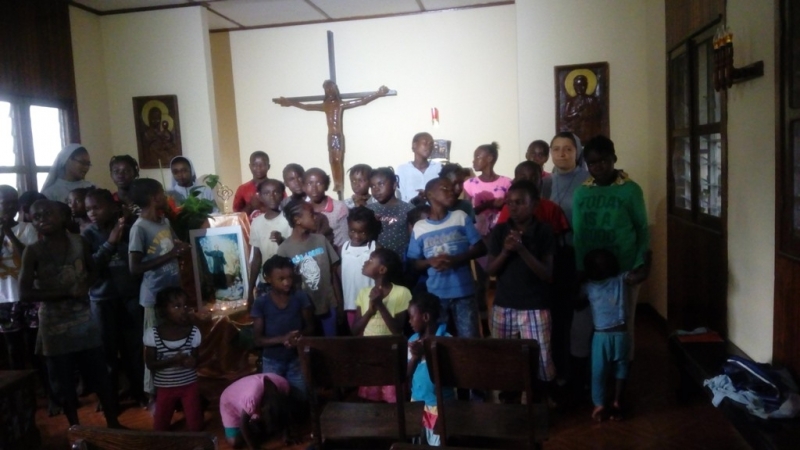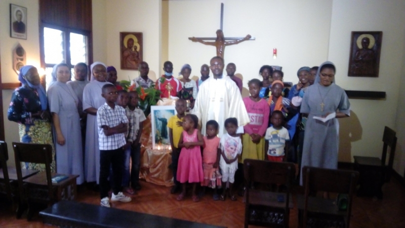 współpracownicy i osoby, którym pomagamy. Zaprosiłyśmy wprawdzie kilka osób, ale dzięki naszym biednym wiadomość rozniosła się „lotem błyskawicy”. Na Mszę św. przyszło tyle ludzi, że nie mieścili się w kaplicy. Ks.Gabin w homilii przybliżył wiernym postać ks. Zygmunta. Zaznaczył, że „Ojciec Zygmunt poruszył świat sobie współczesny. Żyjąc w trudnych czasach nędzy i cierpienia, potrafłl zapalać światło nadziei i prowadzić innych do Boga. Wokoł Niego ciagle były dzieci, młodzież i ubodzy - tak jak dzisiaj wokół Sióstr. Widać, że mają one coś z ducha swojego Założyciela”. Po Eucharystii wszyscy otrzymali „chleb św. Zygmunta” i obrazki z modlitwą. Następnie udali się do swoich domów, ale po drodze każdy podzielił się ze swoimi znajomymi skąd wraca i zaczęły się „pielgrzymki” do naszej kaplicy. Przez cały dzień ciągle ktoś modlił się przed obrazem. Po południu przyszły dzieci i mlodzież z grup parafialnych. Każdy chciał mieć obrazek Ojca Zygmunta na pamiątkę - rozdałyśmy wszystkie obrazki jakie byly w domu, a nawet zabrakło, bo nikt nie spodziewał się tylu osób. Nie mogło również zabraknąć dzieci z naszego przedszkola i żłobka, które najpierw poznały Ojca Zygmunta na katechezie. I tak, mimo ograniczeń z powodu pandemii, ponad 200 osób miało możliwość świętować wraz z nami Jubileusz 100.lecia narodzin dla nieba Świętego Księdza Zygmunta Gorazdowskiego.