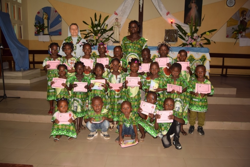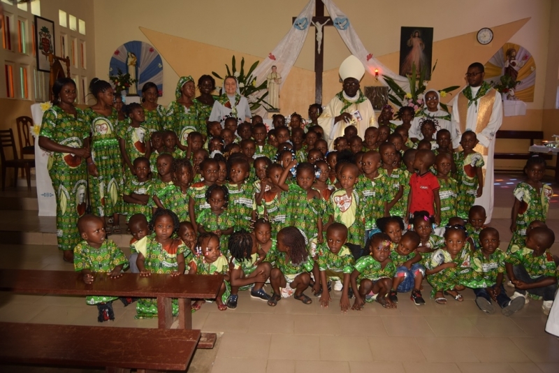 Mszę św. celebrował ks. bp naszej diecezji Urbain Ngassongo. Dzieci wraz z siostrami przygotowały oprawę liturgiczną i taniec na ofiarowanie, a rodzice i nauczycielki wykonali taniec na dziękczynienie. Po Eucharystii przedszkolaki przedstawiły scenkę: „Dzieci świata”. Starszaki otrzymały dyplomy na zakończenie przedszkola. Wszystko zakończyło się wspólną agapą w ogrodzie przedszkolnym.