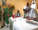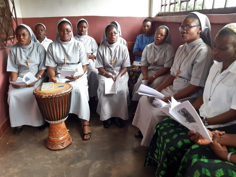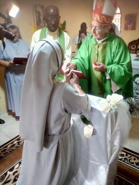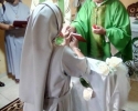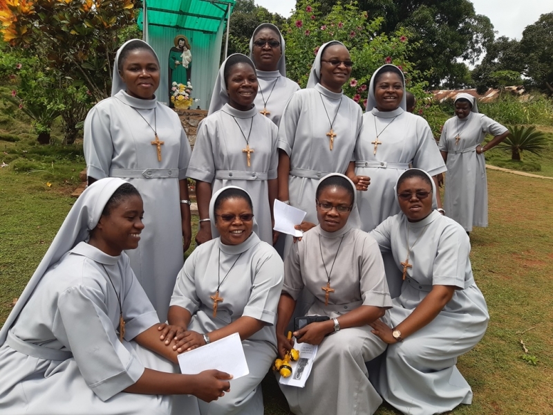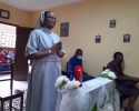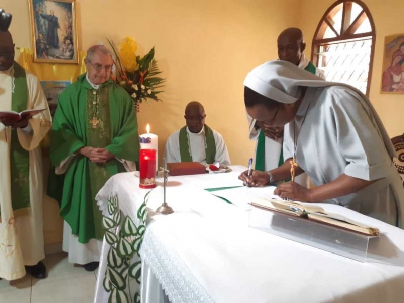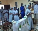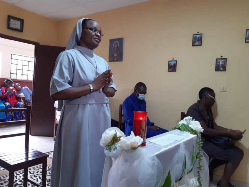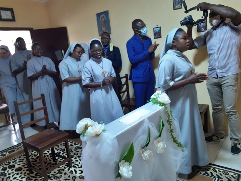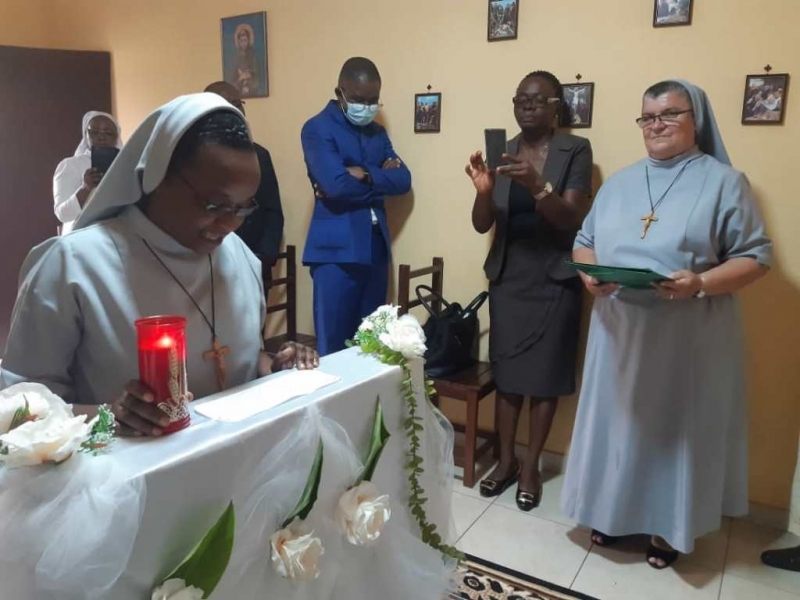 W intencjach S. Judith koncelebrowali Mszę św.: Ks. Victor Essono Ekoe -proboszcz parafii w Omvan, Ojciec Jan ze Zgromadzenia Maryi Niepokalanej, Ojciec Jean Pierre – karmelita oraz Księża: Charle i Felix. Na Uroczystość przybyło kilka osób świeckich i Sióstr zakonnych pochodzących z Konga Demokratycznego, którzy chcieli w pewnym stopniu chociaż, zastąpić nieobecnych Rodziców i najbliższych Siostry Judith. Mimo zamkniętych granic z powodu wirusa covid19 i kryzysu sanitarnego, wspólnota liturgiczna przeżyła tego dnia wielką duchową radość z powołania zakonnego S. Judith i jej definitywnej odpowiedzi Bogu. O wierność jej wieczystego “TAK“ modliliśmy się żarliwie, ubogacając liturgię śpiewem zakonnego chóru. Siostra Judith zaślubiona Bogu na wieki niech będzie przedłużeniem Jego miłosiernych Dłoni dla współczesnego świata.