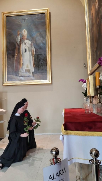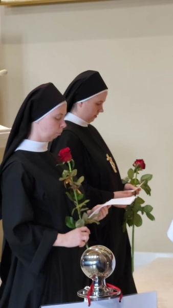 Następnie po wspólnej modlitwie Wieczyste Neoprofeski odczytały napisane przez siebie akty zawierzenia i złożyły róże pod obrazem Patrona Miasta Krakowa. Wydarzenie to było wymownym duchowym dopełnieniem uroczystości Ślubów Wieczystych oraz dziękczynieniem za wszystkie otrzymane łaski z prośbą o dalsze prowadzenie Przemożnego Opiekuna Zgromadzenia Sióstr Świętego Józefa..